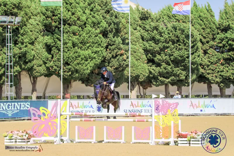 Cavalla di 8 anni, figlia di Douglas (cavallo di 150 cm) da madre di 145 cm. Ha completato tutti i cicli di giovani cavalli al Sunshine Tour Montemedio, con classificazioni nei campionati di Spagna per i 5, 6 e 7 anni, arrivando al campionato nazionale dei 5 anni. Molto bella e ben conformation. Nessun problema con la tosatura, ferratura, veterinario o camminatore; gestibile con tutti i tipi di maneggio. Molto tranquilla anche per passeggiate in campagna. Carattere 10/10 in arena. Adatta sia a dilettanti che a professionisti. Dispongo di lastre di gennaio 2026 approvate dai veterinari. Vendita rapida a causa di saturazione del box.