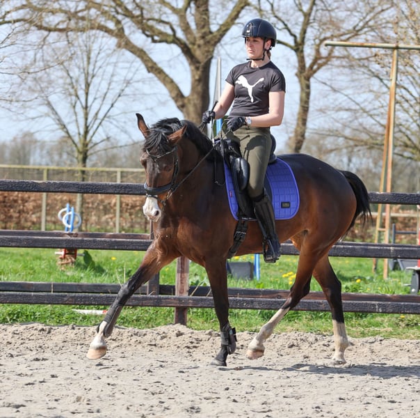 Wunderschöne dunkelbraune Elite IBOP-Prok D-oc Stute Stockmaß 1,70 m James Bond x G Ramiro Z Kwpn Sehr gute sportliche Mutterlinie Dressur Diese liebe Stute ist eher phlegmatisch als nervös oder sensibel. Sie ist unkompliziert im Anhänger und beim Verladen und fährt gerne mit. Ob auf dem Platz oder unterwegs, sie ist brav und vollständig verkehrssicher und unternimmt auch gerne Ausritte in den Wald, sowohl alleine als auch in der Gruppe. Sie läuft erfolgreich in der M-Dressur und bewältigt diese mühelos. Sie verfügt über drei schöne Gänge und viel Leichtigkeit in den Seitengängen, aktuell wird sie auf die Klasse Z vorbereitet. Die einfachen Wechsel meistert sie sehr leicht. Auch mit einem eher unerfahrenen Reiter ist sie brav gewesen und hat keinen Fehler gemacht. Sie macht Sprünge bis zu 1 m Höhe und scheint dabei viel Freude zu haben, egal ob bei normalen Hindernissen oder Naturhindernissen. Sie genießt die Abwechslung im Training deutlich und ist auch als Allrounderin geeignet. Mehrere Videos und weitere Informationen sind per WhatsApp erhältlich. 0031652539025 (sprechen Niederländisch, Deutsch und Englisch)