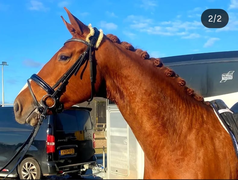 Kapitale en zeer ruig bewegende merrie die als beste merrie van de IBOP in Lisse uit de bus kwam met 81.5 punten. Heeft bij ons ondertussen 2 mooie veulens gehad en is wegens een laat veulen in 2025 niet gedekt. Ze komt uit een lijntje met veel sport en predicaten. Oma Daisy, moeder Ivory en zo nog een aantal anderen uit het lijntje zijn bij ons te zien en zijn paarden die door iedereen bereden kunnen worden - jong en oud - ervaren en onervaren. Als 2.5 jarige 100% goed op de foto inc. rug/hals, mag nogmaals gekeurd worden k.k. Door een spierscheurtje in de (verkorte spier) onderhals heeft ze moeite met de aanleuning / balans. Te koop als fokmerrie of recreatiepaard, na 3 jaar niet rijden weer onder het zadel geprobeerd en topbraaf (whatss app voor filmpjes), niet schrikachtig, goede looplust. Zou een fantastisch paard zijn voor buitenritten en zou ook een man op passen qua maat. Paard met kwaliteit en een super karakter wat zeker geschikt is voor de fokkerij! Haar moeder Ivory (Elite, ibop, prok, sport Z2 dressuur, NMK) was in Nederland 5e van de kampioenskeuring als 3 jarige en liep als jong paard in de halve finale van de Pavo Cup en in verschillende jonge paardenrubrieken eindigde zij hoog. Oma Daisy mocht als 3 jarige ook naar het NMK en is elite, prok, ibop, sport ZZ zwaar. Zowel de moeder Ivory als oma Daisy staan nog bij ons op stal. Ivory komt na het veulenen ook beschikbaar, Daisy is in het bezit van een familie als betrouwbaar leerpaard.
