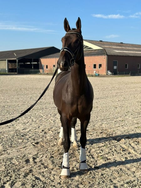 ✨ For sale: Maxillaria – eight-year-old mare (High Five U.S. x Gribaldi) ✨ • Height: 1.75m • Level: L level competed • PROK approved (as a 3-year-old, without remarks) Maxillaria is a handsome, friendly mare with a good temperament and easy to handle. She comes from the highly regarded and proven Otrichta line. Her mother Dracaena has been declared preferred based on her first three offspring, and her grandmother Charitas is a performance mare and index topper thanks to her successful progeny, including the well-known Exquis Nadine (by Partout). This makes Maxillaria not only interesting for sport but also for breeding. She was successfully competed at L level a few years ago and has since had a foal. This year, she is being brought back under saddle. Maxillaria is well-behaved, willing to work, and not easily impressed. She is easy to ride and enjoys jumping as well. Thanks to her pedigree and the fact that she has already had a healthy foal, she is suitable as a sport horse, broodmare, or recreational horse. Her first foal is still in our possession and can be viewed here (not for sale). This mare has only one point of attention: she can be a bit hesitant when putting on the bridle. However, once she trusts you, this improves significantly, and once the bridle is on, there are no issues. For someone willing to take on this small challenge, a beautiful, reliable sport horse is ready. Asking price: €10,999 (Bids are welcome, but nonsensical offers will not be responded to. Vetting = buyer's expense.) For more information and to make an appointment, please contact the phone number below +31 6 38118146