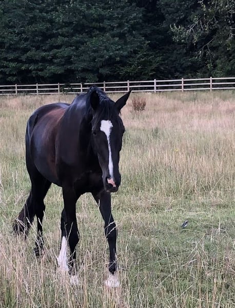 Leuke fokmerrie met goede afstamming. Beheerst de oefeningen tot Z, was elk jaar geselecteerd voor nationaal kampioenschap (LRV + jonge paarden). Blonk vooral uit door evenwicht en aanleg tot verzamelen. Op 3 jaar volledig RX en klinisch gekeurd zonder opmerking. Heeft ook een OCD predikaat. Absoluut niet kijkerig, maakte graag een spong, wandelen in groep en alleen, door water etc. Eenvoudig in de omgang en erg mensgericht. Staat bij ons in de kudde buiten. KAN NA WEIDE ACCIDENT (val) NIET MEER BEREDEN WORDEN. Werkte tijdens revalidatie 6 maanden in tuig aan de lange lijnen (ook met sleep) zonder problemen. Kent aan de lange lijnen en in de hand alle dressuuroefeningen. Momenteel vol (was vlot van eerste keer vol), het veulen blijft bij ons. De merrie kan weg na het spenen. Kan bij ons opnieuw gedekt worden. Weg wegens overtal. Enkel naar een goede thuis, geen handelaar.