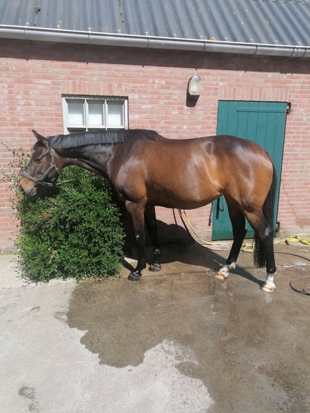 Mijn knappe merrie Lima is ontzettend vriendelijk en zacht maar bouwt snel spanning op. Ze heeft tot haar 3e bij iemand gestaan die haar elke avond met een zweep haar stal in sloeg, ze heeft daardoor angst voor 'laagtes' en 'smaltes' bij mij staat ze in een inloopstal waar ze goed en graag gebruik van maakt. Ze is gewoon bereden en ook in het bos maar je moet een geduldige en vriendelijke ruiter of amazone zijn. Lima staat hier met een shetlander, ik denk dat ze veel gelukkiger gaat zijn in een kudde. Omdat ik inmiddels de leeftijd heb bereikt waar ik gewoon wil opstappen en wegrijden zonder eerst de stemming van mijn paard te peilen of grondwerk te moeten doen, ga ik heel langzaam en zonder tijdsdruk op zoek of er misschien een mens is waar ze mee klikt en die ziet wat een bijzonder paard ze is. Een goed huis is voor mij belangrijker dan de prijs en dat goede huis is niet een gouden kooi maar vrijheid, vrienden en genoeg eten/scharrelen.
