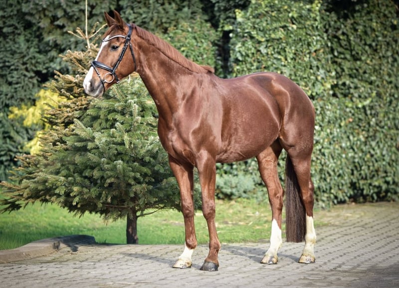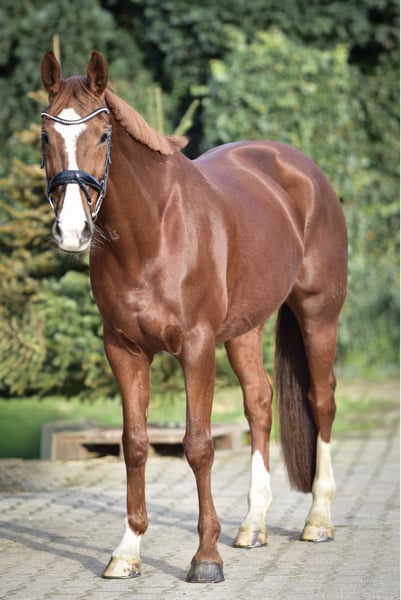 Absolutes Traumpferd Mara ist eine 2017 geborene KWPN Stute abstammend von Chippendale x Uphill. Durch ihre Größe von 165 cm ist sie ein hervorragendes Mädchenpferd. Sie sucht einen Reiter mit dem nötigen Feingefühl für sensible Pferde. Mara hat wunderbare, reele GGA. Besonders hervorzuheben, ist ihr gutes hinterbein im Galopp. Sie ist nicht umweltorientiert und auch in fremder Umgebung immer bei ihrem Reiter. Zudem geht sie top auf den Anhänger und ist auch sonst sehr gut erzogen. Im Umgang ist sie sehr Menschenbezogen und eine ruhige Seele. Mara hat einen vollständigen TÜV und ist komplett geimpft. Zudem ist sie frisch beschlagen. Ein Video ist vorhanden. Mara ist ganz brav, allerdings nicht für Anfänger geeignet, da sie nach Fohlenpause erst wieder angeschoben werden muss.