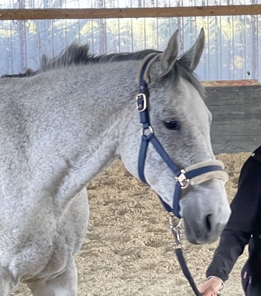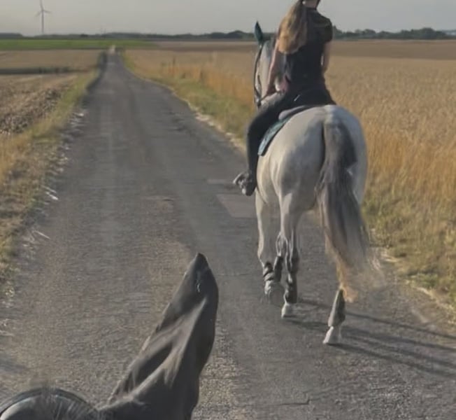 Mi yegua de 9 años (con pasaporte FEI válido y excelente linaje) busca urgentemente un nuevo hogar. La joven que la montaba ya no tiene interés en la equitación. En su juventud, la yegua tuvo un potrillo y, a los 6 años, fue presentada en concursos de salto en Alemania hasta 1,10 m y en los Países Bajos hasta 1,20 m. Después, volvió a tener un potrillo. Posteriormente, fue montada por una joven sin experiencia en salto, y ha saltado hasta la altura de L. También ha estado en campo, en pista de doma y en indoor. Es un caballo muy amigable y cariñoso, que no muerde ni patea. Además, no es nerviosa. En la cuerda de manejo entra sin problema, y es tranquila durante el lavado, la visita del herrador y el veterinario. Mide 1,68 m y tiene un potencial de salto enorme. En entrenamiento, ha saltado hasta 1,35 m con un joven jinete. Su linaje habla por sí mismo. El dentista la revisó en verano y está vacunada regularmente. Es una yegua sin desgaste, ya que tuvo dos potrillos, y cuenta con un reciente informe radiológico de buena calidad de sus patas, cuello, espalda y columna. Lamentablemente, lleva medio año en la pradera y en box por falta de jinete. Esperaba que la joven no abandonara el deporte ecuestre, pero ahora necesita urgentemente un nuevo hogar, ya que las praderas están cerradas. Este tesoro es más que interesante para el salto de alto y la cría. Estoy abierto a ofertas realistas. La yegua se vende por el estado no entrenado y por ello a un precio muy por debajo de su valor. No es posible realizar una prueba de salto o montar en vista de que solo ha estado en pradera últimamente. Por consulta, podemos enviar más videos. Salta sin espuelas ni látigo, tiene un carácter muy dispuesto y es muy cómoda en el asiento. Nunca ha rechazado un salto. Corre sin herraduras. Por favor, solo interesados serios.