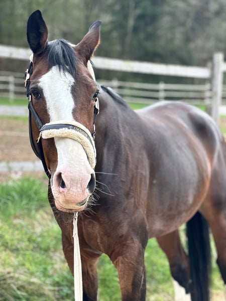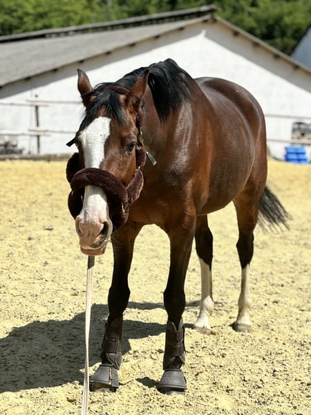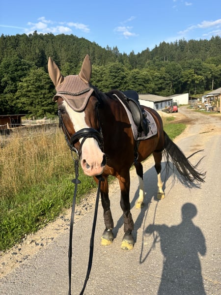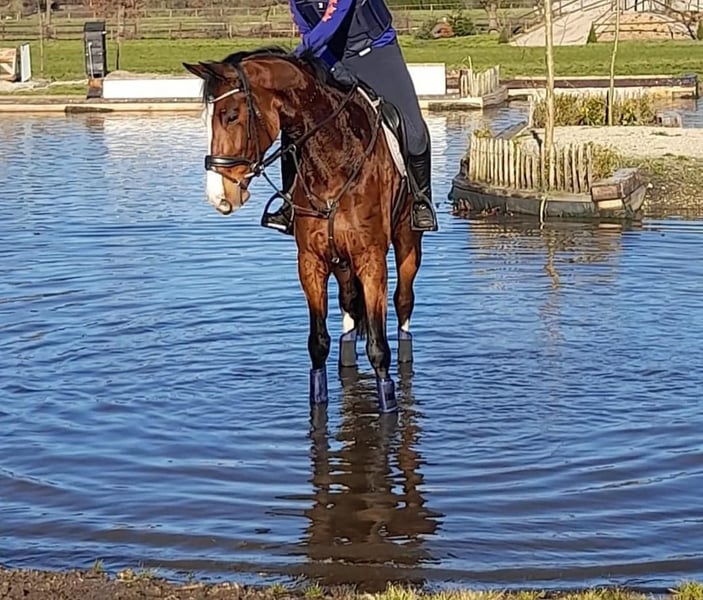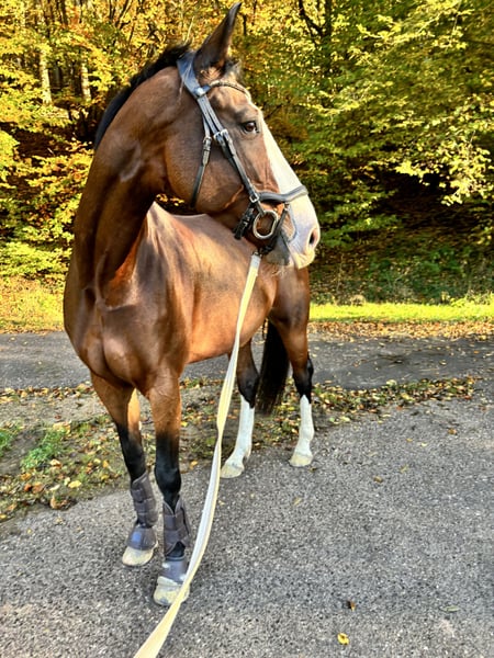 I am selling my 9-year-old KWPN mare by Dallas VDL out of Timeless. Very interesting for breeding! (Elite, IBOP (spr), PROK). She has already foaled once. Unfortunately, we haven't been able to find a good match, and after nearly two years, I have to admit that she is too spirited for me. She is not suitable for beginners! I have mostly worked with her from the ground; she has been ridden only occasionally during this time, most recently about four months ago. She is kept on pasture or in a paddock during the day and in her box at night. Currently, she has a full set of shoes, has been regularly treated osteopathically, and has been vaccinated regularly against tetanus and influenza. A trial ride is possible; please contact me privately for more details! Feel free to message me if you have any questions!