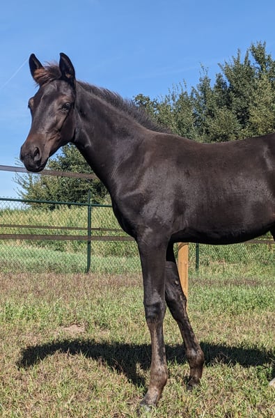 Virginia Beach is a very sweet mare who was born in May. She stands at home and comes to hand every day, and she knows the foal ABC. She is very affectionate and is looking for a 5-star home. She has a very good, calm character and is not easily impressed. If you are interested, we would love to hear from you. You are always welcome to come by, take a look, and make your own impression of her.