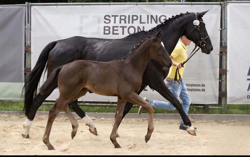 Vater Extreme US gewann den Pavo Cup 2025 in Ermelo, wie viele bereits wissen. Die Mutter Despina ist eine Staatsprämienstute und ihr Vollbruder ist Grand Prix-Dressursieger in Frankreich. Als junge Stute gewann Despina sowohl die Stutenprüfung als auch die Leistungsprüfung, bevor sie in der Zucht eingesetzt wurde und bereits Auktionspferde hervorgebracht hat. Elyse wurde bei der Fohlenprüfung in unserer Region platziert und hat das ausgezeichnete Wesen ihrer Mutter geerbt. Dies ist ein besonders interessantes Stutfohlen mit hervorragenden Qualitäten sowohl für den Sport als auch für die Zucht. *Sie sehen es richtig, meine Damen und Herren, dieses Pferd wurde bereits in einer früheren ESHA-Auktion angeboten, aber der Mindestpreis wurde nicht erreicht. Wir bieten eine 2. Chance in dieser Auktion mit einem neuen Mindestpreis.