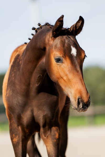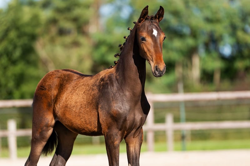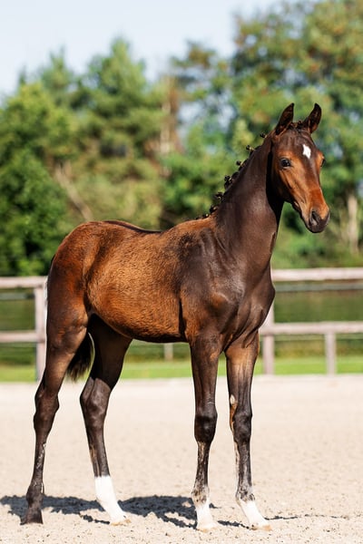 Knap dunkles braunes Hengstfohlen mit rautenförmigem Abzeichen, korrekter Bauweise und leichtfüßigem Gang ab dem 01.11.2025 verfügbar. Valeryo VS wurde mit Blick auf das Dressurpotential gezüchtet und hat einen ehrlichen, kooperativen Charakter sowie die Körperbau, um zu versammeln, mit korrektem Gangwerk. Valeryo VS kennt sein Fohlen-ABC, hat einen neugierigen Charakter und zeigt sich gerne. Neue Situationen und Erfahrungen nimmt er auf und lernt bereitwillig. Für weitere Informationen bitte persönlichen Kontakt oder E-Mail aufnehmen. Video auf Anfrage.