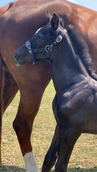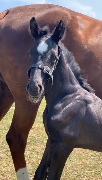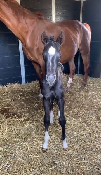 KWPN Dressage Yearling Stallion: handsome ✨ Urban Dance is black/brown with a beautiful marking: 4 white feet and a blaze. Urban was born on 17-06-2024. He was our second foal from Total McLaren out of our ⭐️ Charmeur x Ferro mare. 1.62 m. The mother was only registered in the studbook through home inspection in the past. A beautiful, powerful mare. The mother’s mother is the dam of the approved stallion KENNEDY by Ferro. • Asking price €3000 ✨ Tijuana, a 1-year older sister, is also available for viewing. She is a beauty, a well-developed, chic, tall black mare with the same markings. She has the Do-C predicate. They are sweet and gentle animals that are easy to handle and provide a sense of trust. All move powerfully with a nice free use of the foreleg. The phenomenal stallion Total McLaren is the exceptional 8-year-old son of the legendary Totilas, combined with the top genes of De Niro and Sandro Hit. His impressive performances in sport and his outstanding breeding quality. * Bronze at the Bundeschampionat 2022 for 5-year-old dressage horses. * Oldenburg Hauptprämien: Awarded for the exceptional quality of his foals. Total McLaren was the true discovery of the KWPN stallion inspection 2020 in Den Bosch, where this extremely beautiful and fantastically tall black stallion, with his elegant appearance and his three high-quality basic gaits, drew all eyes to him. Andreas Helgstrand also wanted to buy him, and Total McLaren moved to Denmark. Here he was also approved for the Dansk Verband and completed his performance test with expected highlights in the basic gaits and rideability, achieving a total score of 807.0 points. Under Jana Schrödter, he secured Bronze at the Danish Dressage Championships with a dream score of 10.0 for his canter. In 2022, he again won Bronze with Leonie Richter in the saddle; however, this time at the Bundeschampionat for five-year-olds in Warendorf (8.8). Total McLaren: this year moved to the Netherlands 🇳🇱 in collaboration with Hengstenstation v.Uytert / Stal Brouwer and Helgstrand. 🏡 You can visit our horses at our home in Rockanje. Videos available upon request. Foals and yearling stallions may be sold at a lower price range if there is a good feeling. Stallions can be raised in Zeeland. 💎 The 2.5-year-old black mare may only move for a good offer based on her value. Bezuijen- Overheid KWPN membership number: 16933 +31611225027