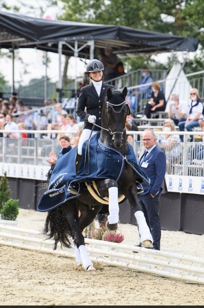 KWPN Dressage Yearling Stallion: schicker ✨ Urban Dance ist schwarz/braun mit einer schönen Abzeichen: 4 weiße Füße und eine Blesse. Urban wurde am 17.06.2024 geboren. Er war für uns das zweite Fohlen von Total McLaren aus unserer ⭐️Charmeur x Ferro Stute. 1,62 m. Die Mutter wurde in der Vergangenheit nur über eine Hausbegutachtung ins Zuchtbuch aufgenommen. Schöne, kräftige Stute. Die Mutter der Mutter ist die Mutter des gekörten Hengstes KENNEDY v. Ferro. • Preisvorstellung 3000€ ✨ Tijuana, die 1 Jahr ältere Schwester, ist ebenfalls bei uns zu besichtigen. Sie ist eine Schönheit, eine schön entwickelte, schicke, hochbeinige schwarze Stute mit demselben Abzeichen. Sie hat das Do-C Prädikat. Es sind liebe und sanftmütige Tiere, die leicht zu handhaben sind und ein vertrautes Gefühl geben. Alle bewegen sich kraftvoll mit einem schönen, freien Vorderbein. Der phänomenale Hengst Total McLaren ist der außergewöhnliche 8-jährige Sohn des legendären Totilas, kombiniert mit den Topgenen von De Niro und Sandro Hit. Seine beeindruckenden Leistungen im Sport und seine hervorragenden Vererbungseigenschaften. * Bronze beim Bundeschampionat 2022 für 5-jährige Dressurpferde. * Oldenburger Hauptprämien: Ausgezeichnet für die außergewöhnliche Qualität seiner Fohlen. Total McLaren war die wahre Entdeckung der KWPN-Hengstschau 2020 in Den Bosch, wo dieser äußerst bildschöne und fantastisch hochbeinige schwarze Hengst mit seinem eleganten Erscheinungsbild und seinen drei vor allem hochwertigen Grundgangarten alle Blicke auf sich zog. Andreas Helgstrand wollte ihn unbedingt kaufen und Total McLaren zog nach Dänemark. Dort wurde er auch für den Dansk Verband zugelassen und absolvierte dort seinen Leistungsprüfungstest mit den erwarteten Höhepunkten in den Grundgangarten und der Rittigkeit und einer Gesamtpunktzahl von 807,0 Punkten. Unter Jana Schrödter sicherte er sich Bronze bei den Dänischen Dressurmeisterschaften mit einer Traumnote von 10,0 für seinen Galopp. 2022 eroberte er erneut Bronze mit Leonie Richter im Sattel; jedoch diesmal beim Bundeschampionat für fünfjährige in Warendorf (8,8). Total McLaren: ist in diesem Jahr in einer Zusammenarbeit von Hengstenstation v. Uytert / Stal Brouwer und Helgstrand nach den Niederlanden 🇳🇱 umgezogen. 🏡 Unsere Pferde können bei uns zu Hause in Rockanje besichtigt werden. Videos auf Anfrage. Fohlen und Jahrlinghengste dürfen bei gutem Gefühl zu einer niedrigeren Preisklasse verkauft werden. Aber zügig. Hengste können in der Aufzucht in Zeeland untergebracht werden. 💎 Die 2,5-jährige schwarze Stute darf nur gegen ein gutes Angebot nach Wert umziehen. Bezuijen- Overheid Kwpn Mitgliedsnummer: 16933 +31611225027