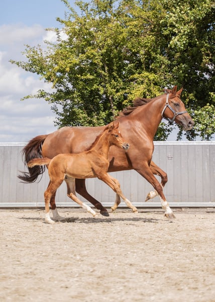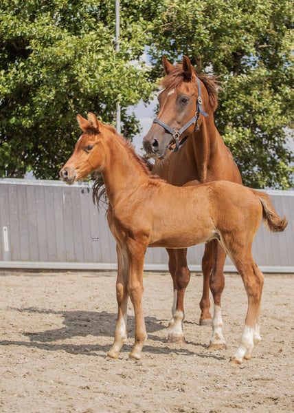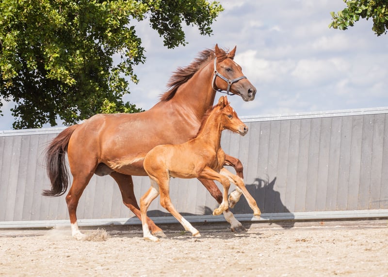 Voor wie investeert in kwaliteit en bewezen genetica Dressuurgefokte jaarling hengst | Juni 2025 | Vos | Pitch Perfect x Johnson Te koop aangeboden: zeer aansprekende vos hengst, geboren juni 2025, met een sterke dressuurafstamming en bewezen predicaten in de moederlijn. Afstamming V. Pitch Perfect MV. Johnson Uit een stb elite, PROK, IBOP, preferente merrie uit de gerenommeerde Bleustyle-lijn. De moederlijn staat bekend om haar constante vererving van kwaliteit, instelling en rijdbaarheid. Binnen deze lijn zijn meerdere sportpaarden actief in de dressuur, met paarden die zich onderscheiden door balans, werkwilligheid en aanleg voor verzameling. De preferente status bevestigt de duurzame fokwaarde van deze stam. Via Pitch Perfect komt modern dressuurtype, souplesse en een aansprekend front. Johnson voegt bewezen Grand Prix-genen, kracht en draagvermogen toe. Een genetisch zeer interessante combinatie voor de ambitieuze sport- of fokkerijgerichte koper. Model & Beweging Modern, langgelijnd dressuurmodel met correcte fundamenten en goed ontwikkeld beenwerk. Hij toont: Een ruime, zuivere stap Een tactmatige draf met souplesse en balans Een krachtige galop met natuurlijke bergop tendens Daarnaast valt hij op door zijn attente, blije uitstraling en natuurlijke presentatie. Karakter & Opfok Nieuwsgierig, mensgericht en nuchter in de omgang. Correct opgegroeid in kuddeverband met zorgvuldige, evenwichtige opfok. Prijsklasse Passend binnen het midden- tot hogere segment, overeenkomstig zijn afstamming, predicaten en kwaliteit. Voor serieuze interesse en aanvullende informatie graag persoonlijk contact.