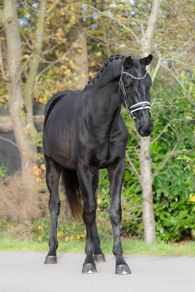 This striking young horse is not only incredibly handsome, but also has impressive movement. With his looks and expressive way of moving, he is sure to steal the show. He is lightly trained and responds well to work. Are you looking for a future top performer? Don’t hesitate and contact us today!
