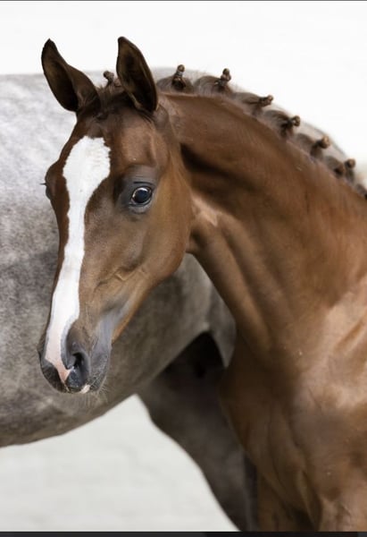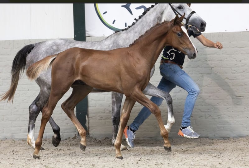 Upgalord JT – Promising Youngster with Top Conformation https://www.horsetelex.de/horses/pedigree/2595332/upgalord-jt Upgalord JT comes from the first foal crop of the Westphalian Reserve Champion Agalord KCX Berghoeve, who impressed across the board at the Münster-Handorf Sport Test. As a son of Aganix du Seigneur, he leaves a lasting impression both through his own qualities and his early progeny. On the dam’s side, he is paired with a daughter of the international sport stallion Emir R, who achieved great success under Rolf-Göran Bengtsson. His offspring, such as Kingston, Castello, and Lemiro, are already making significant marks in international show jumping. The granddam, Loly-Pop B, is a half-sister to the successful S-level horse Vive la Vie (by Quattro). From this direct dam line, there are also international Grand Prix horses (1.50/1.60m), Uddel (by Voltaire) and Iron Maiden (by Quasimodo van de Molendreef). Key Data & Character • Age: 2-year-old colt (approved for breeding – but can also be gelded on site) • Color: Dark chestnut (a real eye-catcher!) • Conformation: Correct build, striking appearance – a true “full package.” Upgalord impresses with an outstanding temperament. He is exceptionally intelligent, already shows good awareness and caution over fences. Thanks to his above-average movement and work ethic, he is a true all-rounder: • Jumping / Hunter / Equitation: Excellent attitude and a lot of awareness at the jump. • Dressage / Eventing: Due to his quality of movement and fearless nature, also very promising. A partner for the future! He is very clear-minded and brave. Therefore, he is suitable not only for professionals but also for ambitious amateurs who want to train their own young horse and grow together with him. I purchased Upgalord as a foal and am selling him only with a heavy heart due to personal circumstances. He is currently enjoying his upbringing at a professional 5-star stable about 20 km from Borken, where he can be visited at any time. If you are interested, please feel free to contact me.