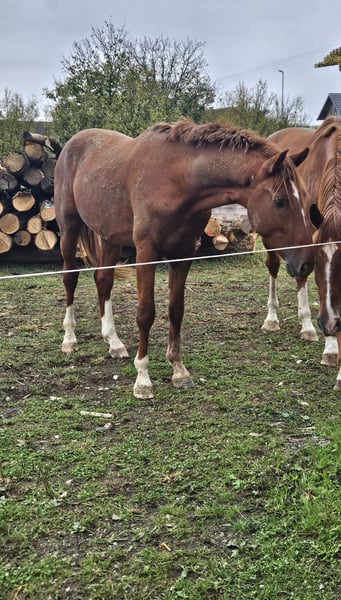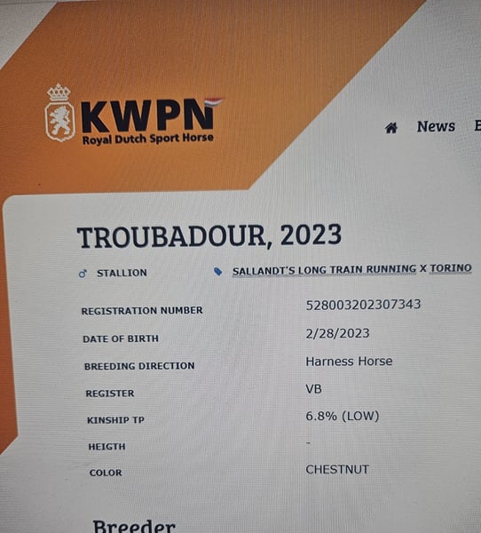 Zum Verkauf: Junger KWPN-Hengst Geburtsdatum: 28. Februar 2023 Preis: 4.000 € Standort: Kroatien Ein junger KWPN-Hengst, der harmonisch in einer Herde mit Stuten lebt. Er kann harembedingt zur Zucht eingesetzt oder handgeführt werden. Er ist sehr ruhig, verfügt über Grundkenntnisse im Natural Horsemanship und wurde bereits einige Male in Koppelarbeit im Paar gefahren. Er ist lernfreudig, genießt das Training und zeigt großen Respekt gegenüber seinem Trainer. Tausch möglich: Interessiert an einem Marathon-Kutschpferd für ein Paar oder an einem KWPN-Tuigpferd-Wallach, Fuchs (Braun) mit weißen Beinen.