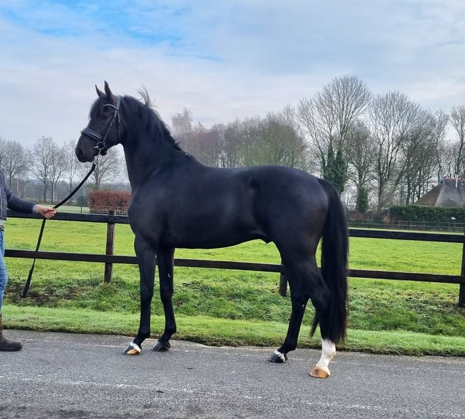 Wunderschöner schwarzer Dressurhengst, 3 Jahre alt, direkt vom Züchter. Er wurde speziell gezüchtet und trägt in den Adern eine Prise Blut aus der Zuchtlinie der Fahrpferde. Er zeigt viel Ausdruck und ist wirklich ein vielversprechendes Talent für die Zukunft, zumal seine Abstammung Grand Prix-Genen ohne Ende hat. Die Mutter des Hengstes ist auf Niveau Z2 eingestuft. Ihr Vollbruder war erfolgreich in der Grand Prix unter Marieke van der Putten. Der Vater des Hengstes ist der Grand Prix-Hengst Painted Black. Der Hengst wurde röntgenologisch untersucht und besitzt sowohl das DOC- als auch das PROK-Zertifikat. Auf Anfrage sind weitere Fotos und Videos dieses Blickfangs erhältlich.