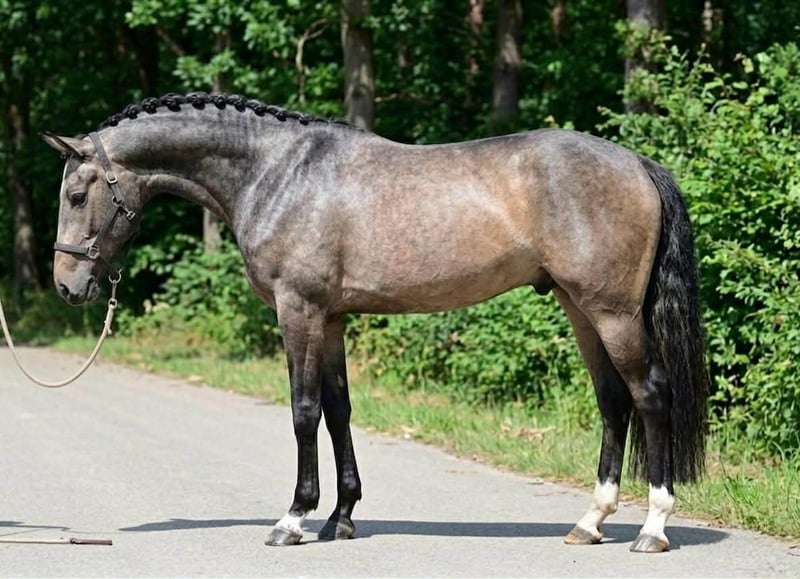 Elegant and promising 3-year-old stallion, standing at 169 cm, with a modern sport horse type and excellent presence. This young horse shows great potential for sport, combining strong movement, a balanced build, and a willing, trainable temperament. He is well-handled, correctly developed for his age, and comes with full pedigree documentation. A perfect prospect for riders or professionals looking to bring on a talented young horse. Guarantee & Conditions: We sell all our horses exclusively with a contract and warranty. This horse is sold with a full guarantee, ensuring transparency and confidence in your purchase. 📲 Contact (WhatsApp): +36 30 639 2427 Serious inquiries only. Videos and additional information available upon request.