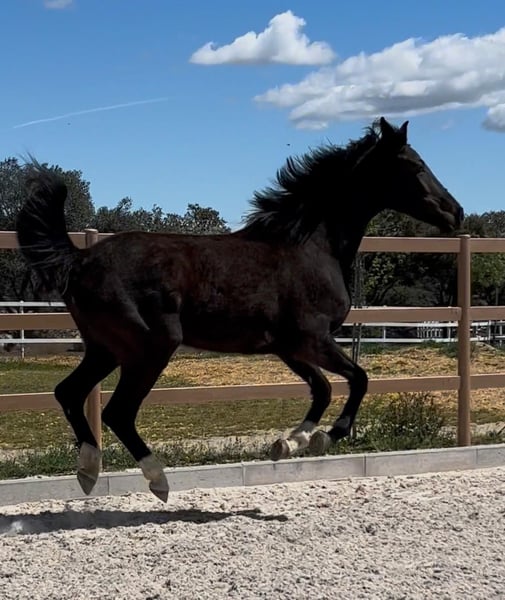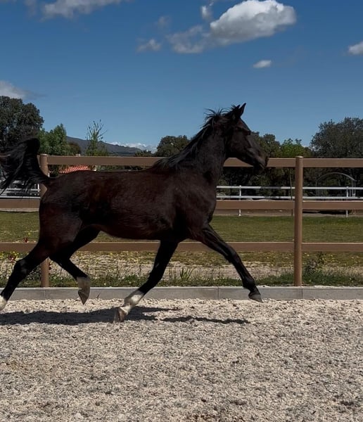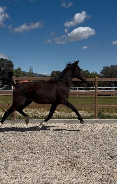 Se vende TOTEN DJH, yegua KWPN negra impresionante, 170 cm, nacida el 06/06/2023. Desbravada, con pasaporte oficial KWPN emitido en Ermelo (febrero 2024). Pedigrí de primer nivel absoluto: hija de LE FORMIDABLE, Campeón del Licenciamiento KWPN 2019 e hijo de BORDEAUX (Preferente, ranked top 10 WBFSH dressage sires tres años consecutivos, padre de BOHEMIAN y BLUETOOTH en Grand Prix, y de 7 hijos aprobados KWPN). La madre de Le Formidable, VIENNA, es hija de FERRO, uno de los grandes sementales de referencia del siglo XX. El propio Le Formidable ha generado una primera cosecha de potrancas con precios de subasta destacados y varios hijos aprobados KWPN, siendo el padre del Campeón del Licenciamiento KWPN 2023, L’AVENIR. Por línea materna, TOTEN desciende de TOTILAS (el caballo más famoso de la historia de la doma, hijo de GRIBALDI, récord mundial de puntuación) y de KRACK C (Preferente, montado por Anky van Grunsven en Grand Prix internacional). Le Formidable x Totilas x Krack C: tres nombres que se venden solos en el mercado europeo de doma. Una yegua de gran formato, tipo y genealogía excepcionales para competición o cría al más alto nivel. Precio negociable.