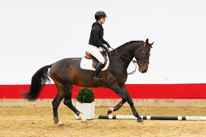 R.Kannan Jr immediately captures attention with his big, elegant canter, his light-footed way of going and his impressive scope. Although still a stallion, he is well-behaved and friendly in handling. His sire, Kannan Jr., was champion of the KWPN stallion approvals and was ridden by Olympians Marcus Ehning and Jur Vrieling. Under Vrieling, he competed successfully in the 1.60m classes, including a fifth place in the LGCT Grand Prix of New York. The dam, Galienke, is a daughter of the 1.40m stallion Opan, followed in the dam line by the influential blood of Garanco