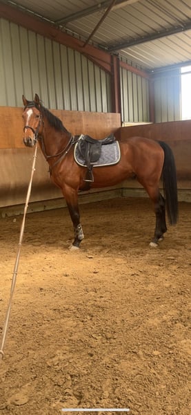 Entier KWPN de 5 ans, gros moyens, à finir de former Plus d’infos et vidéos par whatsapp