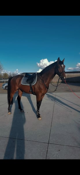5-jähriger KWPN-Hengst, groß und kräftig, noch auszubilden. Weitere Informationen und Videos über WhatsApp.