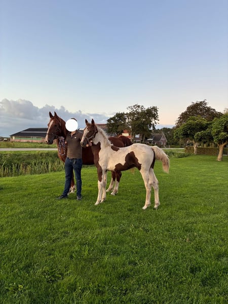 Ein einzigartiges KWPN-Pinto-Hengstfohlen. Valence geboren am 26. April 2025. Urgent x Oliver Paola ist die Mutter. Eine sehr brave Stute. Angelernt für die Kutsche. Oliver ist homozygot. (Nachkommen immer gescheckt) Valence hat eine kräftig gebaute Vorderhand. Er erhält viel Aufmerksamkeit, kennt das Halfter und auch das Waschen. Valence ist für jeden Besitzer geeignet, sowohl für die Freizeit als auch für die Zucht. Valence ist gechipt und entwurmt. Bei ernsthaftem Interesse bitte anrufen oder eine Nachricht senden. (Keine unseriösen Angebote) Nicht am Sonntag.