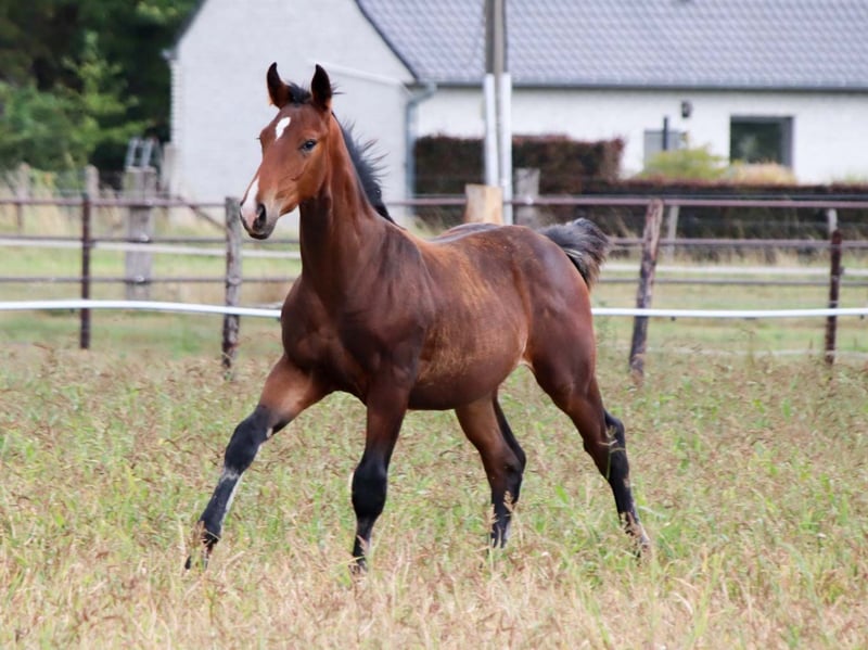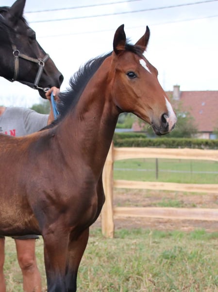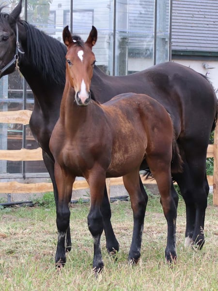 Geboren am 03.04.2025 Großes, schön gebautes, korrektes Hengstfohlen mit guten Bewegungen und viel Kraft in der Hinterhand. Das Fohlen hat einen sehr süßen und anhänglichen Charakter. v. Emiliano (Escamillo x Vitalis x Likoto xx) ist ein junger deutscher Hengst, der seinen 50-Tage-Hengsttest in Adelheidsdorf gewonnen hat. Er scheint ein guter Vater zu sein – mehrere Fohlen aus seinem ersten Jahrgang 2024 wurden über deutsche Fohlenauktionen ausgewählt/verkauft. Kommentar auf Horses.nl zu Emiliano: „Emiliano (Escamillo x Vitalis) hat den 50-Tage-Test in Adelheidsdorf als bester Dressurhengst abgeschlossen. Der dreijährige Hengst, Gewinner des Westfalenwappens Anfang des Jahres, erhielt für die Dressurkomponenten einen Durchschnitt von 8,45. Ein Pferd mit einer sehr guten Zukunft vor sich“, lautete die erste Reaktion der Bewertungskommission zu Emiliano. Bewertet wurden Trab, Interieur, Charakter und die Bereitschaft, mit Neunen zu arbeiten.“ M. Royalistin (Royal Diamond x Sao Paulo x Feingau) ist eine hannoversche Verbandspremiere. Sie stammt aus derselben Mutter wie der Dressurvererber Rosentanz (v. Rohdiamant). Rosentanz wurde 2003 in Hannover gekört und für 200.000 Euro nach Dänemark verkauft, wo er als Deckhengst eingesetzt wurde. Seine Leistungen erreichten das GP-Niveau. Royalistin hat bereits mehrere gute Sportpferde hervorgebracht, darunter Prinzessin (Grand Prix) – Fürstenkind (Prix Saint Georges) – For Diamond (Auktionspferd bei der Oldenburger Sattelinspektion) – Queran (Finalist 4-jährig Belgian Cup Dressur) – Sacramento (erfolgreiche junge Dressurpferde UK) – Pomme d'Amour (guter EPTM-Test).