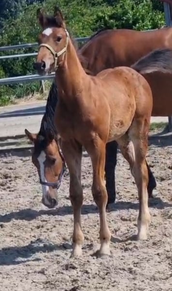 Puledro atletico in vendita con il seguente pedigree: Stargos VDL x fattrice elite di Apardi x Cassini II. La madre (1,70 m) ha ottenuto con successo l'EPTM con una valutazione media di 8 ed è stata successivamente utilizzata per la riproduzione. Questo puledro attivo, allevato per il salto ostacoli, ha tre ottimi passi di base e una buona flessibilità nel galoppo. Ha delle belle gambe dritte! Testa lussuosa. A causa della situazione attuale, i puledri sono in vendita. Il puledro è nato a metà aprile. Video disponibili tramite WhatsApp. Se seriamente interessati, contattare il 0622488716. Il cavallo si trova a Voorhout, Zuid-Holland.