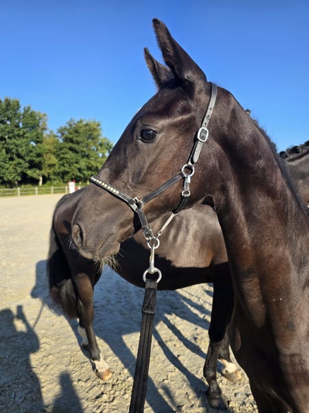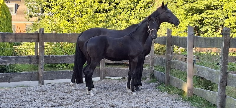 Fijn mensgericht hengstveulen van O'toto van de Wimphof x Florencio Elite,Sport Zzz, (D-oc)x Farrington. Loopt netjes mee aan het halster. Uit deze merrie komt ook een bij het Oldenburger stamboek goedgekeurde hengst, een halfbroer loopt Zzz