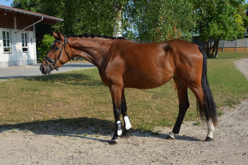 Nika, la cavalla baia di tre anni, colpisce per il suo carattere amichevole e si dimostra volenterosa sotto la sella. Dopo solo pochi mesi di addestramento, ha concluso il suo esame di prestazione per fattrici con un punteggio di 8,25. In particolare, nel salto libero ha ottenuto un punteggio di 9,0. La giovane fattrice ha già effettuato alcuni salti con il cavaliere. Con ulteriore formazione, ha potenziale per di più. Se desiderate conoscere Nika, venite al Riemer Pferdemontag il 14 luglio 2025! A partire dalle 18:00, presso l'Olympia-Reithalle (Landshamerstr. 11, 81929 Monaco di Baviera), verranno presentati diversi cavalli in vendita. Successivamente, potrete contattare direttamente i proprietari e, se lo desiderate, fare una prova di sella. Sarà garantito il servizio di ristorazione e l'ingresso è gratuito!