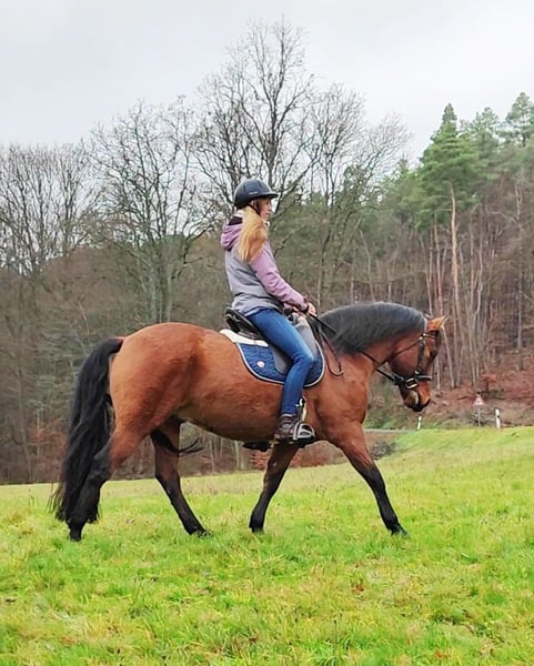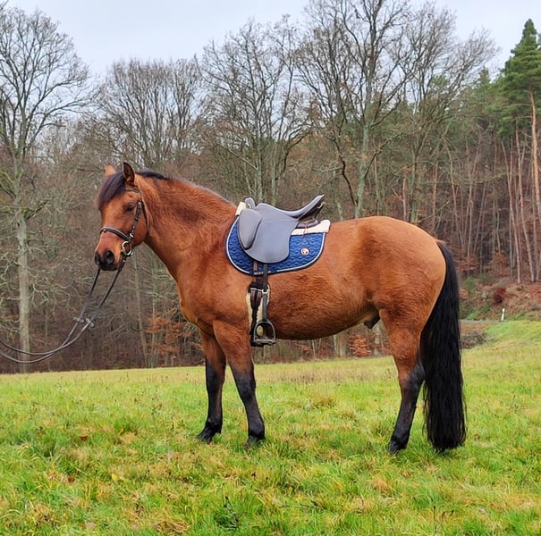 **** IM AUFTRAG ZU VERKAUFEN **** Leonhard's Nike - Vielseitiges und wunderschönes Reitpferd für ambitionierte Reiter! 10-jähriger, 155cm großer Leonharder Wallach (PRE x Welsh-D/Haflinger) mit voller Abstammung V: Naviero (Pura Raza Espaniol) M: Vanessa (Welsh D / Haflinger) in der schicken Sonderfarbe Braunfalbe mit Mega Schweif und Mähne! Er war ein Prämienfohlen! NIKE beeindruckt sofort durch seine starke Präsenz und Aufrichtung. Im Umgang sehr gut erzogen und dem Menschen zugewandt, begeistert er unter dem Sattel durch seine natürliche Versammlung und angenehme Bewegungsfreude. Er ist solide in der Dressur bis Klasse L ausgebildet und läuft routiniert auf dem Platz und in der Reithalle. Das große Viereck wartet nun auf ihn, wobei er auch im Bereich Working Equitation viel Talent & Freude zeigt. Ein tolles Pferd zum Spaß haben und trainieren. Um konzentriert und gehorsam zu Arbeiten benötigt NIKE die Anwesenheit von anderen Pferden. Er kennt es auch alleine spazieren zu gehen oder auszureiten, gerät hierbei jedoch schnell aus seiner Komfortzone und wird deshalb bevorzugt in der Gruppe ausgeritten. Aktuell ist er in professionellem Geländeberitt und erweitert seine Fähigkeiten in diesem Bereich. Auch im Bereich Springen wurde NIKE bereits geschult und zeigt Mut & Ehrgeiz. Dazu hat er sich bereits als braves Schulpferd bewiesen und zeigt durchaus Freude in der Abteilung geritten zu werden. Turniererfahrung im Bereich Springen und Führzügel hat er auch. Einige Zirkuslektionen kann er ebenfalls, wie z.B. den Spanischen Gruß. Hier steht ein absolut vielseitiges und wunderschönes Pferd zum Verkauf! Perfekt für Wiedereinsteiger, ambitionierte Dressur und Springreiter oder erfahrene Freizeitreiter! *** VIDEOS und weitere Bilder/Infos gerne über Whats App 01778787640 *** NIKEs drei sehr gute Grundgangarten lassen sich super bequem sitzen, den Galopp kann er sehr langsam und gesetzt springen. Seine Anlehnung ist fein und macht dem Reiter Freude beim Abrufen der gelernten Lektionen. Da er spanisches Temperament mitbringt, sollte man sicher im Sattel sitzen und keine Angst beim Reiten haben. **** www.handmade-horses.de **** ✔️ Geritten bis Klasse L (Dressur) ✔️ Geländesicher in der Gruppe ✔️ Wiedereinsteiger / Fortgeschrittene ✔️ Gewichtsträger ✔️ Gesund ✔️ Geimpft (Tetanus & Influenza) und Entwurmt ✔️ Volle Papiere und Equidenpass ✔️ Schmiede- und Verladefromm ✔️ incl. gesamten Equipment (Springsattel, Trense, Decken,... usw.) Eine Ankaufsuntersuchung kann gerne im gewünschten Umfang in Auftrag gegeben werden. Kennenlernen & Probereiten (50 Euro je Termin), Transport ins neue Zuhause,... nach vorheriger Absprache und gegen Übernahme der Kosten gerne möglich! NIKE ist bestens sozialisiert (rangmittig), schmiede- und verladefromm, aktuell barhuf, Tetanus/Influenza geimpft, kennt Boxenhaltung, Offenstall und Weidehaltung. Top Gesundheit, keine Krankheiten oder Verletzungen. Die Besitzerin möchte dieses wundervolle Pferd aus privaten Gründen verkaufen und sucht bevorzugt ein förderndes Zuhause für ihn. Bitte bei ehrlichem Interesse bei mir über Whats app 01778787640 melden.