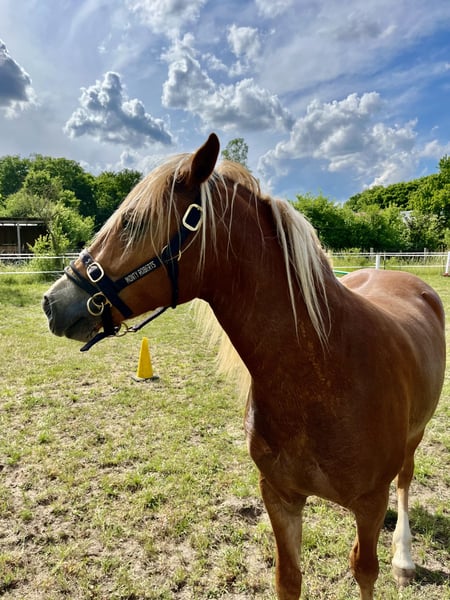 Verkaufe Leonharder Stute – Geburtsjahr 2023 Zum Verkauf steht unsere wunderschöne Leonharder Stute (f1), geboren im Jahr 2023. Dieses charmante Fuchsstütchen besticht durch ihr freundliches Wesen und ihre sportliche Erscheinung. Mit einem Stockmaß von 153 cm eignet sie sich hervorragend für den Dressursport und begeistert durch ihre Bewegungsqualität und Lernbereitschaft. Bisher macht ihr bereits Boden- und Freiarbeit große Freude. Schweren Herzens darf sie nun in ein neues Wohlfühl-Zuhause ziehen wo sie mit Bedacht und Liebe gefördert und gefordert wird, eine treue Begleiterin im vielseitigen Pferdesport zu werden. Sie ist auf jeden Fall Ideal für ambitionierte Reiter, die eine talentierte und vielversprechende Nachwuchsstute suchen. Sie wäre dank ihrer guten Abstammung auch sehr gut geeignet um die Zucht der noch jungen Pferderasse Leonharder fortzuführen. Auf dem Letzten Foto ist ihr Vater zu sehen. Bei Interesse oder für weitere Informationen stehe ich gerne zur Verfügung.