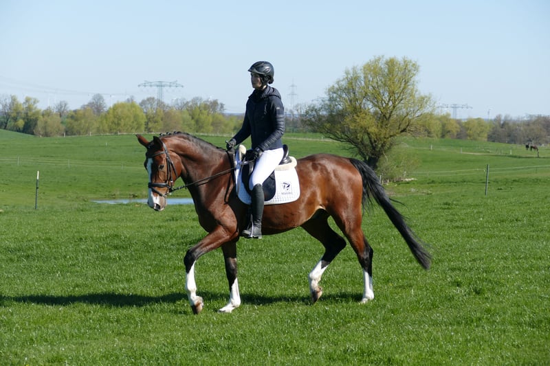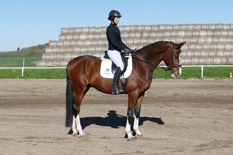 Alastor Qadeer: - Moderner Reitpferdetyp auf korrektem Fundament - Er gibt ein ganz sicheres Reitgefühl und ist dabei bequem zu sitzen - Anfänger geeignetes Familien Reitpferd - Voltigier getestet