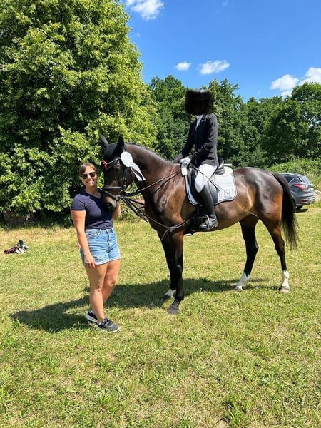 Luna Lovegood sucht ein liebevolles und förderndes 5-Sterne-Zuhause. Schweren Herzens verkaufen wir unsere 10-jährige Stute Luna Lovegood in allerbeste Hände. Der Platz geht ausdrücklich vor dem Preis. Luna ist eine absolut ehrliche Stute, die ihrem Reiter gegenüber sehr verzeihend ist und stets motiviert mitarbeitet. Hat man sie einmal auf seiner Seite, macht sie einfach einen tollen Job. 🔹 Springen: Luna verfügt über viel Vermögen, welches bisher nicht weiter gefördert wurde. Im Parcours braucht sie einen ruhigen, ausbalancierten Reiter, ist dabei jedoch stets brav und ehrlich. 🔹 Dressur & Freizeit: In der Dressur muss man sich zunächst etwas zusammenfinden, zeigt sich aber willig bei leichter Dressurarbeit. Ob Ausreiten, Springen, Longieren oder Dressur – Luna ist vielseitig einsetzbar und macht alles zuverlässig mit. Auch an der Longe mit Ausbindern dreht sie gelassen ihre Runden. 🔹 Turnier & Umgang: Sie ist bereits brav Turnier mit einem jungen Mädchen gelaufen und zeigt sich sowohl auswärts als auch zuhause unkompliziert. Im täglichen Umgang ist sie ein absoluter Schatz: ✔ schmiedefromm ✔ verladefromm ✔ brav beim Tierarzt 🔹 Haltung & Sozialverhalten: Luna ist herdenverträglich, sowohl mit Stuten als auch mit Wallachen. Täglicher ganztägiger Auslauf ist für uns eine unabdingbare Voraussetzung. Wir wünschen uns für Luna ein Zuhause, in dem sie weiter gefördert wird und als Partner geschätzt wird. Bei ernsthaftem Interesse freuen wir uns über eine Nachricht mit Infos zum zukünftigen Platz.