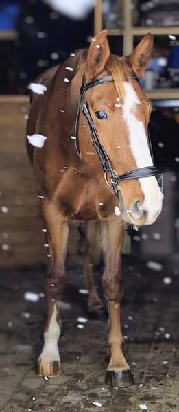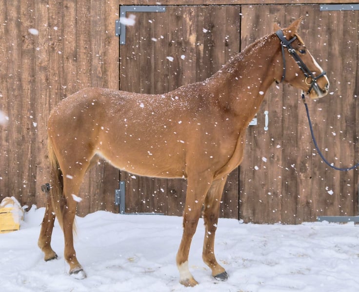 Elegant Latvian Warmblood mare, born in 2022, with a striking chestnut coat and a height of 165 cm. This well-bred young mare exhibits promising conformation and a balanced build, making her an excellent prospect for dressage. Her calm demeanor and natural athleticism suggest she will develop into a versatile and reliable partner for dressage. A rare opportunity to acquire a promising Latvian Warmblood mare with excellent potential for future training and competition.