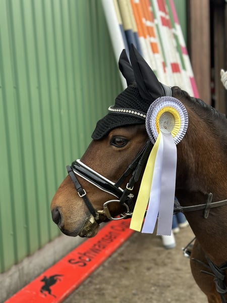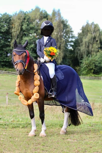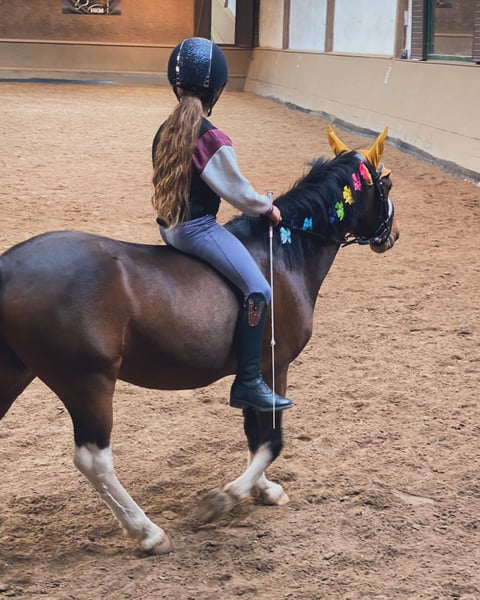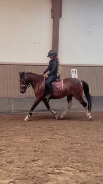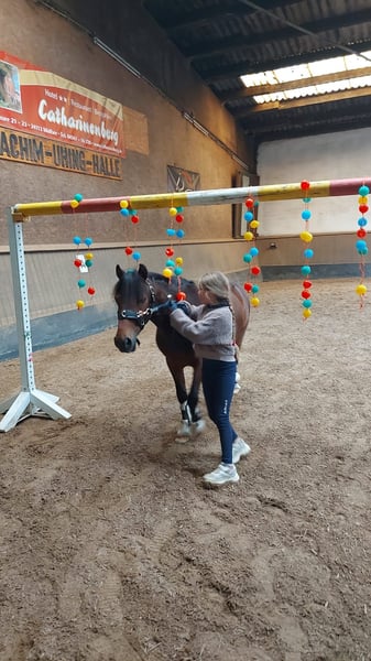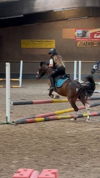 Wir verkaufen schweren Herzens unseren lieben Ponywallach Yakari • Alter: 11 Jahre • Stockmaß: ca. 1,20 m • Disziplinen: Dressur / Springen und Freizeit Yakari ist ein absolut liebenswerter und kinderfreundlicher Ponykamerad. Er wurde erfolgreich auf diversen Turnieren vorgestellt und hat dort bereits goldene Schleifen errungen. Von Führzügelklasse bis Dressur Klasse E ist er auf Turnieren vorgestellt worden. Auch das Springen macht er zu Hause brav und mit Freude mit. Für Kinder ist Yakari ein toller Partner: er lässt sich von den Kleinsten problemlos reiten, ist geduldig und ausgeglichen. Natürlich bringt er – wie es sich für ein richtiges Pony gehört – auch mal einen Dickkopf mit, was ihn nur noch charmanter macht. Er ist zudem für jeden Spaß zu haben – ob Weihnachtsreiten, kleine Zirkuslektionen mit Flatterband oder andere bunte Aktionen. • läuft barhuf • schmiede- und verladefromm • steigt problemlos in den Hänger, auch von Kindern zu verladen • bleibt überall tiefenentspannt und unerschrocken Yakari kennt sowohl Offenstall- als auch Boxenhaltung und lebt aktuell in einer großen Herde. Dort zeigt er sich grundsätzlich verträglich, kann aber auch mal temperamentvoller auftreten. So kommt es vor, dass er gegenüber Artgenossen gelegentlich ausschlägt – daher wird er auf dem Turnier sicherheitshalber mit roter Schleife vorgestellt. Für Menschen bleibt er dabei jedoch stets absolut verlässlich. Wir wünschen uns für Yakari ein liebevolles Zuhause, gerne mit Kindern, die Freude an Turnierstarts haben oder einfach einen zuverlässigen Freizeitpartner suchen. Für ein Probereiten veranschlagen wir 30€ die bei Kauf verrechnet werden.