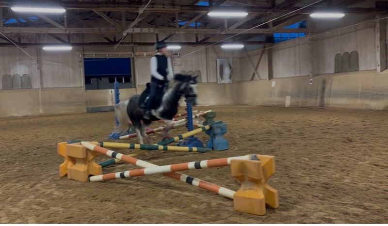 This charming pinto is well on its way to becoming a children's pony. Children aged 10 to 12 already ride him regularly. This year, he has also participated in small riding badge tests. With his excellent basic gaits, especially his trot, and a calm temperament, he promises to be a good competition pony up to A-B level. He enjoys jumping over poles and cavaletti and finds it very fun. He is fearless both in the arena and outdoors. Due to his age, he is suitable for beginners only when accompanied by a riding instructor or experienced parents. He is familiar with both open stable and box stall housing, including turnout on pasture. Children, dogs, and agricultural vehicles are no problem for him. He is open to new experiences, playful, and very quick. Please feel free to contact me if you're interested. We charge €25 for the pony introduction, which will be refunded upon purchase. No sales to riding schools.