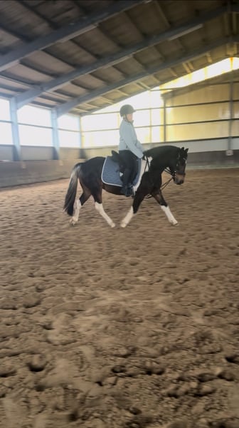 Super dolce pony per bambini in ottime mani da affidare. La nostra Klara cammina dolcemente con i più piccoli a mano libera, è molto obbediente e piacevole da maneggiare, e ama il lavoro in libertà. È sempre motivata e diligente durante l’allenamento. Salta bene e ha andature eleganti. Grazie alla sua struttura robusta, è adatta anche a cavalieri di taglia più grande. Attualmente utilizziamo Klara per il nostro corso di equitazione e la vendiamo su incarico.