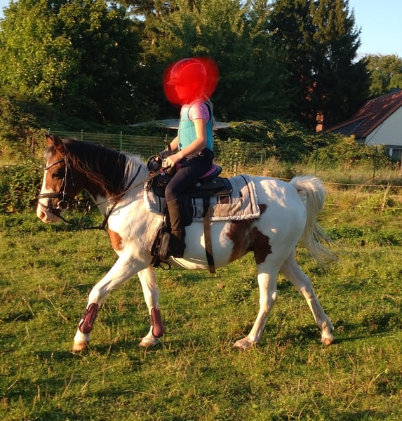 Maja 16 Jahre alte Scheckstute, Freizeit mäßig geritten. Geht ins Gelände. Brav beim Schmied und verladen. Brauch konsequente Menschen. Bei Fragen gerne melden. Spät angeritten Durch Zeitmangel und Töchter wird zu groß für sie abzugeben.