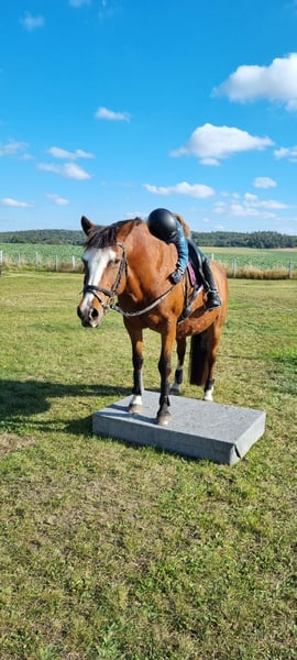 Verkaufe Lewitzer-mix Stute – Perfekt für die ganz kleinen ! Zum Verkauf steht eine tolle Lewitzer-mix Stute, geboren im Jahr 2004. Sie ist braun und hat ein Stockmaß von 148 cm. Maira ist seid 6 Jahren bei uns und war in dieser Zeit nie krank. Sie ist Offenstallhaltung gewohnt, Chefin in der kleinen Herde, regelmäßig geimpft, topfit und unverbraucht. Meine Tochter hat mit ihr zahlreiche Führzügelprüfungen gewinnen können. Sie läuft außerdem super an der Longe. Im Schritt und Trab kann man auf ihr auch Voltigierübungen machen. (Mühle, Fahne, Stehen ... ) In den Reitwettbewerben, die in der Abteilung geritten werden, geht sie am liebsten vorne. Sie hat auch große Freude daran, gelegentlich einen kleinen Sprung zu machen, ist dabei allerdings mit viel Zug zum Sprung unterwegs. Im Gelände ist sie relativ unerschrocken, aber für unerfahrene Reiter eher nicht geeignet. Traktoren und Schafe mag sie zum Beispiel nicht so gerne. Sie lässt sich problemlos, auch von Kindern, von der Koppel holen, putzen und Satteln. Maria geht gerne auf den Pferdeanhänger und ist artig beim Schmied. Maira ist kein Notverkauf und geht nur in allerbeste Hände. Keine Händler und keine Reitschule.