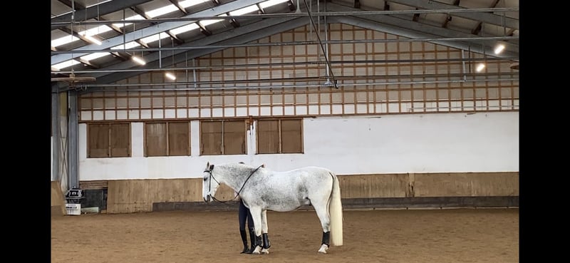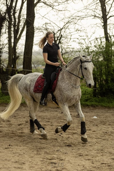 Nikkel ist ein freundlicher, gutmütiger Lipizzaner-Wallach, der völlig frei von jeglicher Bosheit ist. Er ist ein feines und sensibles Pferd, daher nicht für Anfänger geeignet. Ich habe ihn seit seinem dritten Lebensjahr nach den Prinzipien der französischen klassischen Schule ausgebildet. Er hat bis zur L-Klasse in Working Equitation an Wettkämpfen teilgenommen und führt alle seitlichen Bewegungen in allen drei Gängen mit Leichtigkeit aus. In der Bodenarbeit (Parelli, Liberty) ist er gut ausgebildet – er kann auf Kommando steigen, lernt den Spanischen Schritt und führt Schulterherein, Hinterhandwendung und Traversale vom Boden aus aus. Er wäre ein perfekter Partner für einen engagierten Freizeitreiter, einen Working Equitation-Wettkämpfer oder einen Liebhaber der klassischen Dressur. Nikkel ist einfach im Umgang, versteht sich gut mit anderen Pferden und meidet immer Konflikte. Er wird derzeit in einem Halbpaddock mit drei Gefährten gehalten. Er trägt Vorderbeschläge; Impfungen und Blutuntersuchungen sind auf dem neuesten Stand.