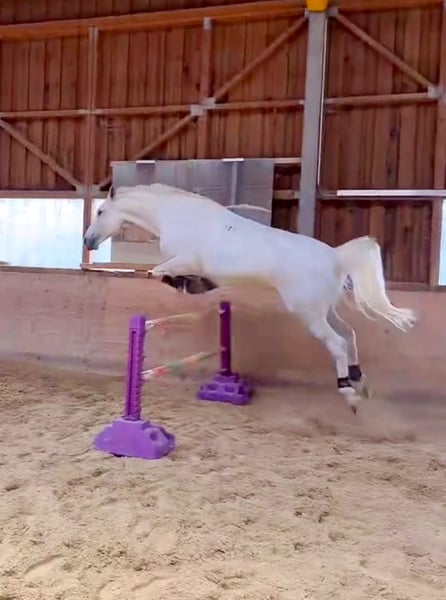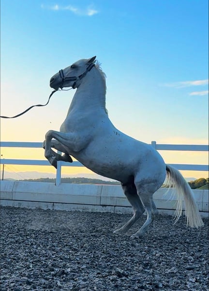 Mein wundervoller, reinrassiger Lipizzaner-Wallach "Conversano Vércse", geboren am 16.04.2018, Stockmaß ca. 160 cm, sucht ein neues Zuhause. Er ist ein traumhafter Schimmel mit viel Ausstrahlung, einem grossen Herzen und einem ganz besonderen Charakter. Er ist für mich nicht einfach nur ein Pferd, sondern ein echter Partner. Umso wichtiger ist mir, dass er nur in ein absolutes 5-Sterne-Zuhause kommt, wo er genauso geschätzt, geliebt und gefördert wird, wie er es verdient. Charakterlich ist er ein absoluter Schatz: ruhig, ausgeglichen, menschenbezogen und ehrlich. Im Umgang ist er sehr brav und aufmerksam. Aufgrund seines tollen Wesens wird er auch problemlos von Anfängern geritten und begeht keinen falschen Schritt. Trotzdem braucht er einen erfahrenen Reiter, wo ihn reell arbeitet um ihn langfristig Gesund zu erhalten. In der Dressur steht er sicher auf A-Niveau und zeigt bereits erste Lektionen der Klasse L. Seitengänge wie Schulterherein im Schritt und Trab sind ihm vertraut und er arbeitet motiviert und lernwillig mit. Aktuell lernt er den Galoppwechsel, vom Boden aus und unter dem Reiter. Auch im Springen zeigt er sich ehrlich, willig und mit viel Freude an der Arbeit und meistert mit Reiter 80 cm, frei sprang er bisher bis 1 m. Ein ganz besonderes Highlight ist seine Begeisterung für Bodenarbeit und Freiheitsarbeit. Hier zeigt er sich als echter Künstler und arbeitet mit viel Ausdruck und Freude. Zu seinem Repertoire gehören unter anderem: Freies Zirkeln, Spanischer Schritt, Seitengänge (In and Out), Rückwärts, Einparkieren, Steigen auf Kommando – auch mit Reiter und weiteres wie zb. Galoppwechsel sind wir gerade am üben. Diese Lektionen führt er zuverlässig aus und macht damit nicht nur im Training, sondern auch beim Zuschauen unglaublich viel Freude. Er ist gesund, steht in sehr gutem körperlichen und muskulären Zustand und ist ein vielseitiger Partner, der seinem Menschen sowohl in der Dressur, in der Bodenarbeit als auch im täglichen Umgang sehr viel zurückgibt - einfach ein richtiger Allrounder. Ich wünsche mir für ihn einen Menschen, der seine besondere Art zu schätzen weiss und ihm weiterhin Zeit, Aufmerksamkeit und Förderung schenkt. Ein Platz, an dem er Teil der Familie sein darf. Coni ist korrekt geimpft und entwurmt, Hufschmied und Verladefrom und hat keinerlei Unarten unter dem Sattel. Standort: Baselland Bei ernsthaftem Interesse erzähle ich gerne mehr über ihn und sende Fotos oder Videos zu. Ebenso Preis auf Anfrage. Es besteht durchaus auch die Möglichkeit ihn ans Futter zu übernehmen. Ein persönliches Kennenlernen ist selbstverständlich möglich.