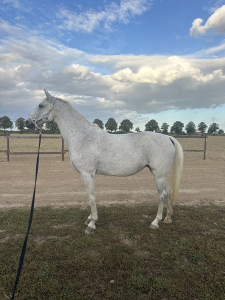 Kucyk lipicański – klacz, rok urodzenia 2013 – sportowa, lojalna, z dużym temperamentem Na sprzedaż oferujemy wyrazistą klacz lipicańską (2013) z dużym charakterem i energią. Jest wytrwale jeżdżona i brała udział w rekreacyjnych skokach do 110 cm. Zarówno na placu treningowym, jak i w terenie, chętnie skacze i czerpie radość z jazdy. Zawsze daje z siebie wszystko i chce się podobać. Uczy się bardzo szybko, nawet trudnych ćwiczeń, i robi to z łatwością. Chętnie myśli wraz z jeźdźcem i przekonuje swoją motywacją. Ma potencjał na starty w zawodach! Szczególnie lubi długie, intensywne i szybkie wycieczki – spacerowanie w chodu nie jest jej ulubione. Najbardziej czuje się w galopie i potrzebuje jeźdźca, który czerpie przyjemność z tempa i energii. Przy tym jest zawsze posłuszna. Pod względem charakteru nie jest to koń dla początkujących. Jest pełna temperamentu, wrażliwa i mocno przywiązuje się do jednej osoby. Gdy już zaufa, jest gotowa „przekuć się przez ogień” dla swojego człowieka. Nie lubi zmieniających się jeźdźców – to prawdziwy koń na jednego właściciela. Zdrowie: Ma astmę, ale przy konsekwentnym utrzymaniu na sianie z sianokiszonką i inhalacji jest obecnie bezobjawowa i w pełni wytrzymała. Zaleca się stała opieka z dostępem do sianokiszonki oraz co najmniej jednej boksu paddockowego, aby utrzymać jej stan zdrowia na stabilnym poziomie. Zna stajnię otwartą, boks i paddock. Sprzedawana z pełnym wyposażeniem na życzenie: Pakiet derków (derki Bucas), siodło do skoków, inhalator Flexineb i inne akcesoria. Nowe siodło do ujeżdżenia można dokupić za dodatkową opłatą. Cena: 4000 € do negocjacji, z wyposażeniem Cena bez sprzętu, tylko z inhalatorem: 2500 € Brak pilnej sprzedaży. Priorytet ma cena. Sprzedawana tylko w odpowiedzialne, doświadczone ręce, które docenią jej temperament. Lokalizacja: Hanower