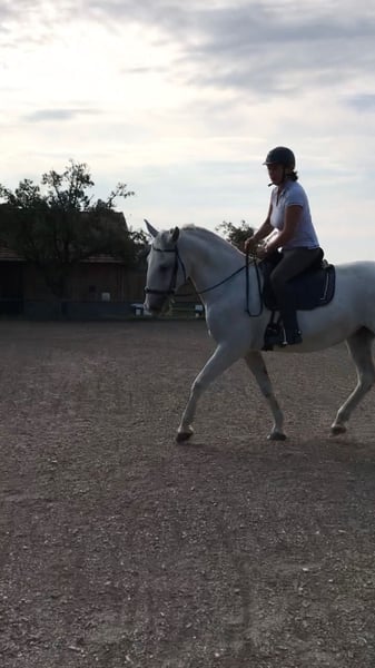 Centaura is very sensitive and intelligent and loves dressage tasks. She prefers clear and confident guidance. Due to time and family reasons, I am giving up riding. I have ridden Centaura recreationally and in dressage (L level), done a lot of groundwork and free work with her, and also prepared her for potential driving. She is very comfortable to sit on in all gaits. She is a very people-oriented horse and pleasant to handle, as well as highly motivated when it comes to new tasks. She is top-notch in terms of mobility. Lipizzaners are horses for advanced riders who are calm. Centaura is used to a mixed herd (mid-ranking) and all-day turnout. She is currently barefoot; in case of shoeing, front shoes would be advantageous. Quality over price!