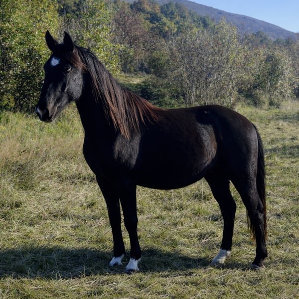372 Bonadea XXVI ist eine wunderschöne dunkel gefärbte Lipizzaner Stute, geboren im Jahr 2022. Die dunkle Farbe ist bei Lipizzanern eher selten und macht sie besonders attraktiv. Sie ist gut sozialisiert und an alle grundlegenden Handgriffe gewöhnt. Die junge Stute wächst natürlich im Herde auf, was zu einem ausgeglichenen Charakter und guter Sozialkompetenz beiträgt. Bonadea zeigt drei taktreine, rhythmische Grundgangarten mit guter Suspension und natürlichem Ausdruck, wodurch sie viel Potenzial für Dressur, klassische Ausbildung oder Zucht mitbringt. Der Transport kann organisiert werden und eine tierärztliche Untersuchung ist jederzeit möglich.