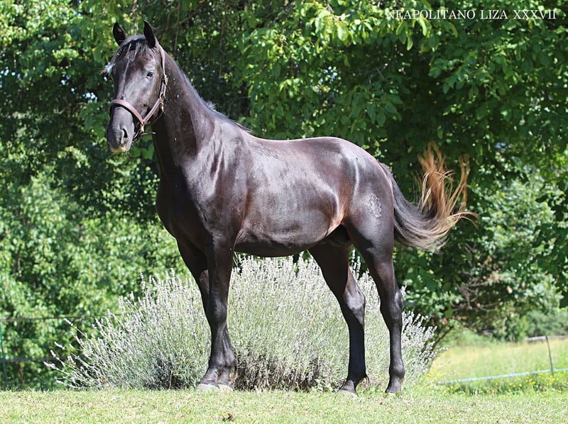 ⚜️ NEAPOLITANO LIZA XXXVII ⚜️ A special young Lipizzaner is looking for his life purpose...🐴🦄 This extraordinary young stallion not only enchants with his character but also with his exciting color development. Although he is currently dark, white hairs are starting to show – perhaps he will one day become a beautiful apple gray… or he may remain in his elegant dark color. Who knows? 🌿 Both of his parents are black, and he carries the best traits of this lineage within him. At Barockpferde Schmigoc, near Ptuj, you can personally meet this young man and also try out the first phases of groundwork with him. He is very people-oriented, affectionate, and a willing worker in the baroque type. At 2.5 years old and with a projected final height of about 1.60 m, he is ready to begin his journey into a new future. He is still a stallion – but a castration can be arranged. ❤️ Those looking for an honest, typy, and strong-charactered Lipizzaner will find a loyal partner for life in him. For more information, feel free to contact via WhatsApp 00386 68 129 392 - Angelika www.hof-der-lipizzaner.com