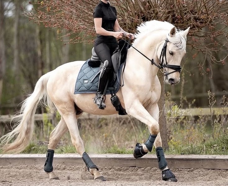 Zum Verkauf steht mein Lusitano-Wallach, geboren am 20.09.2016, mit einem Stockmaß von ca. 1,55, aufgrund veränderter privater Umstände. Er befindet sich aktuell auf einem sicheren Ausbildungsstand der Klasse A und arbeitet aber bereits auf L-Niveau. Turniererfahrung ist vorhanden, inklusive A-Platzierung. Er wurde im letzten Jahr im Beritt gefördert und befindet sich auch derzeit im Teilberitt, sodass er regelmäßig und professionell gearbeitet wird. Er ist geländesicher, zeigt sich unter dem Sattel motiviert und lernwillig und verfügt über drei ansprechende Grundgangarten. Vom Typ her ähnelt er eher einem sportlichen Deutschen Reitpony als dem klassischen Lusitano, wirkt kompakt und elegant. Der Schwerpunkt seiner Ausbildung liegt klar in der Dressur, Springerfahrung hat er keine. Ich kann ihn mir gut bei einem ambitionierten Freizeitreiter oder auch bei einem erfahrenen Jugendlichen mit entsprechender Unterstützung vorstellen, der ihn weiter in der Dressur fördert und eventuell auch auf Turnieren vorstellt. Mir ist ein passendes, förderndes Zuhause wichtiger als ein schneller Verkauf. Bei ernsthaftem Interesse freue ich mich über eine Nachricht mit kurzer Vorstellung. Probereiten ist nach Absprache möglich gegen eine Bezahlung von 30€. Sattel und Zubehör können ebenfalls übernommen werden.