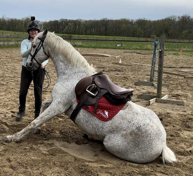 Dolce is a true Unicorn! He's a stunning Grey gelding that has been extensively trained and loves his job! He's quite, loves people and would be perfect for someone just getting into dressage or an experienced Jumper! Dolce Jumps over 4’ ft, Enjoys Piaffe and Passage School Master but loves Jumping more! Here's what this gorgeous boy can do: - Piaffe/Passage - Performs Spanish walk - Leg yields, side passes - Auto Flying lead changes - Sits, bows, lays down on command - Eventing, pony club, local shows, team trials, Fox Hunting - Jumps over 4’ and LOVES it - In your pocket personality - Neck reins, Spins and Trick Roping - Excellent ground manners - Trail, Traffic safe, Not Spooky - Clean X-rays - Sound and barefoot - No maintenance required - UTD on everything - Successfully competed in all three rings, has won trophies, loads of ribbons, ect. - At least an Intermediate Rider Recommended for jumping but yes lots of beginners and children have ridden him! Dolce is easy to catch, gets along with his pasture mates great! Located in South Lyon, Michigan Owner is motivated!