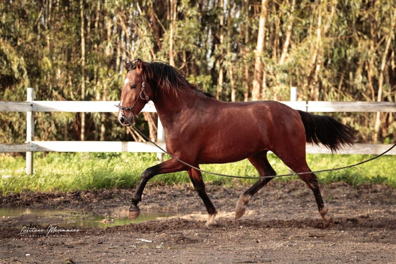 We are offering an exceptional Lusitano stallion from the 2023 vintage for sale. This impressive bay has all the prerequisites for a successful career in dressage due to his special pedigree. Characteristics: Breed: Lusitano Sex: Stallion Year of birth: 2023 Color: bay Height: 163 cm, estimated final height. This young stallion not only impresses with his elegant appearance, but also with his excellent movement potential and willingness to learn. He is extremely cooperative and motivated in daily training. His pedigree is particularly noteworthy, as he is descended from the exceptional stallion ESCORIAL. His sire LIDER DAS FAIAS is licensed with 75 points and his dam with 73 points. He will therefore also be of interest for breeding later on. If you are looking for a talented young horse who, with the right support, has the potential to shine in dressage or working equitation, then this Lusitano could be just the right horse for you. I can send you more pictures and videos if you are interested.