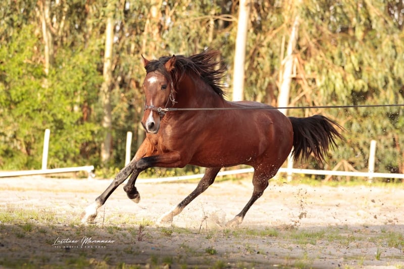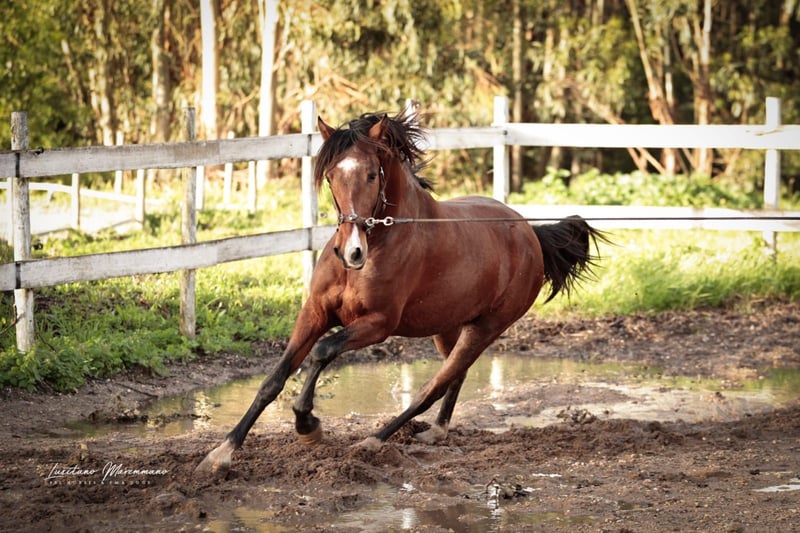 Nous proposons à la vente un étalon lusitanien exceptionnel issu du millésime 2023. Cet impressionnant cheval bai réunit toutes les conditions pour une carrière réussie dans le dressage, en raison de son pedigree particulier. Caractéristiques : Race : Lusitanien Sexe : étalon Année de naissance : 2023 Couleur : bai Taille : 163 cm, taille finale estimée. Ce jeune étalon ne séduit pas seulement par son apparence élégante, mais aussi par son excellent potentiel de mouvement et sa volonté d'apprendre. Il se montre extrêmement coopératif et motivé lors des entraînements quotidiens. Son ascendance est particulièrement remarquable, car il descend de l'étalon exceptionnel ESCORIAL. Son père LIDER DAS FAIAS a été approuvé avec 75 points et sa mère avec 73 points. Il sera donc plus tard intéressant pour l'élevage. Si vous êtes à la recherche d'un jeune cheval talentueux qui, avec un bon encouragement, a le potentiel de briller en dressage ou en working equitation, ce lusitanien pourrait être le cheval qu'il vous faut. Je peux volontiers vous envoyer d'autres photos et vidéos si vous êtes intéressé.