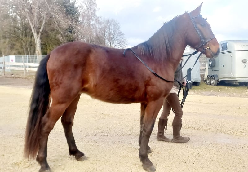 Eckdaten: • Name: Othello • Rasse: Lusitano-Mix • Alter: 4 Jahre • Geschlecht: Wallach • Standort: Tuttlingen Zukünftiges Verlasspferd und idealer Lebenspartner für Kenner, welche die feine, iberische Art zu schätzen wissen als auch mit der typischen charismatischen Dominanz und Sensibilität umgehen können. Wir suchen also einen Pferdemenschen, der Othello durch eine konsequente aber liebevoller Führung Sicherheit und Struktur geben kann. Aktuell befindet er sich in Beritt zur weiterer Ausbildung und entwickelt sich sehr positiv. Er zeigt sich verschmust, lernwillig und kooperativ bei der Arbeit, sodass er die Grundgangarten inzwischen gut beherrscht. Othello kann sowohl im Offenstall/Herdenverband als auch in Boxenhaltung leben, sofern soziale Kontakte und ausreichend Auslauf gewährleistet sind - in Einzelhaltung neigt er dazu, auf dumme Gedanken zu kommen. Fazit: Ein ambitionierter Freizeitpartner der vielseitig von der Dressur bis zur Working Equitation eingesetzt werden kann - erfahrungsgemäß jedoch nicht für den Schulbetrieb geeignet ist. Für einen persönlichen Kennenlern-Termin berechnen wir eine Pauschale von 40€. Wir nehmen uns ausgiebig Zeit und möchten Othello vor Reittourismus schützen, um ein wirklich passendes Zuhause für ihn zu finden. Selbstverständlich wird der Betrag bei einem Kauf wieder entsprechend verrechnet. Ernsthaftes Interesse geweckt? Dann freuen wir uns auf Ihre Nachricht, um weitere Informationen auszutauschen oder einen persönlichen Kennenlern-Termin auszumachen.
